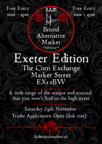 Bristol Alternative Market - Exeter Edition Exeter Corn Exchange George Street Exeter Devon UK EX1 1BU http://exetercornexchange.co.uk/whats-on/bristol-alternative-market-exeter-edition